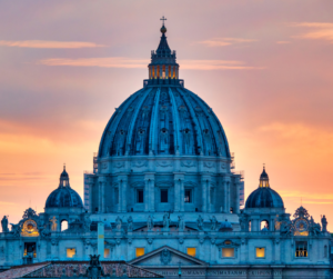 Zbiórka uczestników na lotnisku Chopina w Warszawie o godzinie 04:05 (2 godziny przed wylotem), stanowiska linii Wizz Air. Wylot z Warszawy o godzinie 6:05, przylot na lotnisko Rzym-Fiumicino ok. 8:30. Po przylocie nastąpi przejazd do hotelu, gdzie zostawimy bagaże i spotkamy się z przewodnikiem. Następnie udamy się na zwiedzanie Watykanu. Odwiedzimy Bazylikę św. Piotra oraz Muzea Watykańskie, w których będziemy podziwiać Galerię Map, Kaplicę Sykstyńską oraz Muzeum Powozów Papieskich. W czasie wolnym w dzielnicy Prati przewidziano czas na lunch, a następnie udamy się na spacer wzdłuż Tybru w stronę Zamku Świętego Anioła. Dzień zakończymy zakwaterowaniem w hotelu, obiadokolacją i noclegiem.